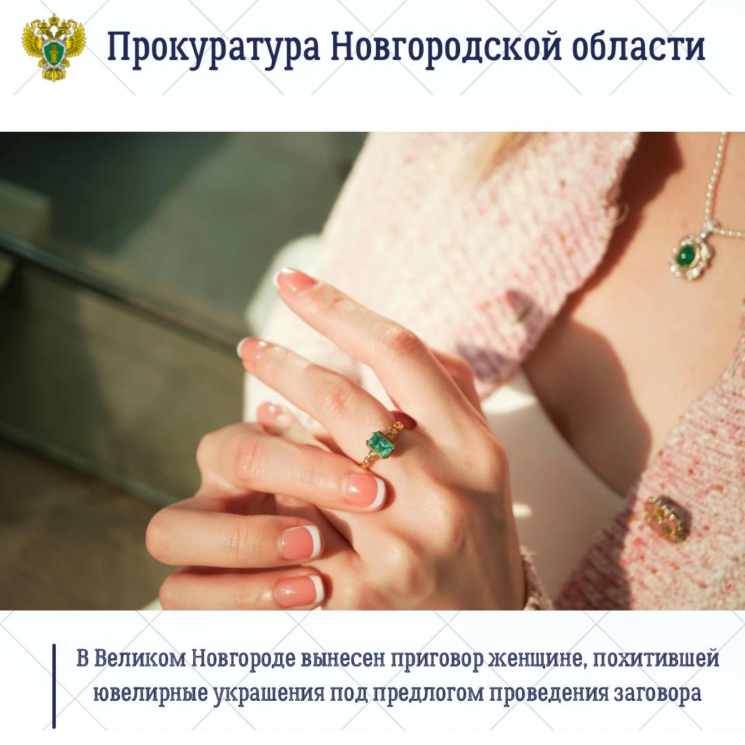 Судом установлено, что в июне 2024 года Янкович, находясь на пр. Мира в Великом Новгороде предложила женщине провести ритуал по наложению заговора. При этом для его проведения якобы необходимы ювелирные изделия потерпевшей.Получив украшения, подсудимая скрылась и распорядилась ими по своему усмотрению, причинив потерпевшей материальный ущерб в размере свыше 60 тыс. рублей.