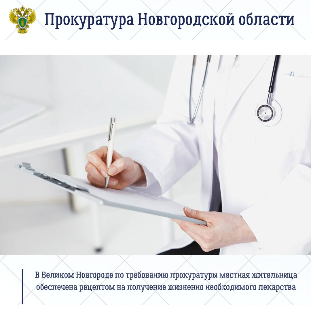 Прокуратура Великого Новгорода провела проверку по обращению местной жительницы о необеспечении ее лекарственным препаратом.