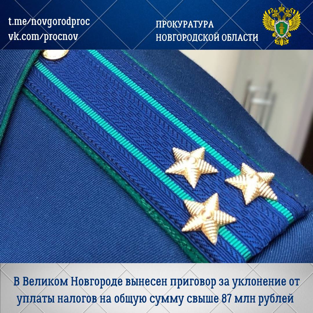 Новгородский районный суд с участием представителя прокуратуры Великого Новгорода вынес обвинительный приговор по уголовному делу в отношении генерального директора ООО «НТК «Лидер» Николая Мальцева и его заместителя Захара Ябанжи. Они признаны виновными в совершении преступления по п.п. «а,б» ч. 2 ст. 199 УК РФ (уклонение от уплаты налогов, совершенное группой лиц в особо крупном размере).