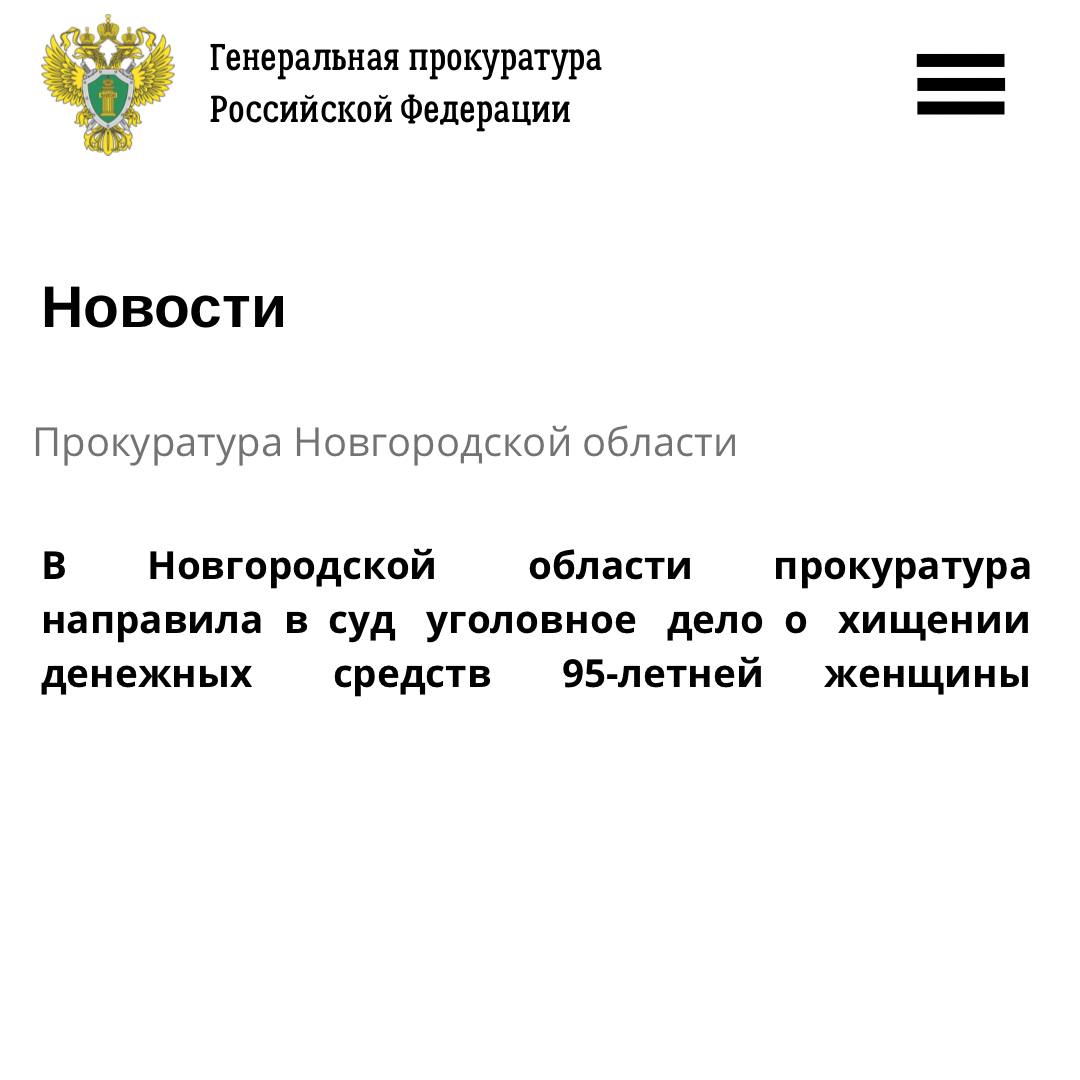 Таким способом у 95-летней новгородки было похищено свыше 1,1 млн рублей.