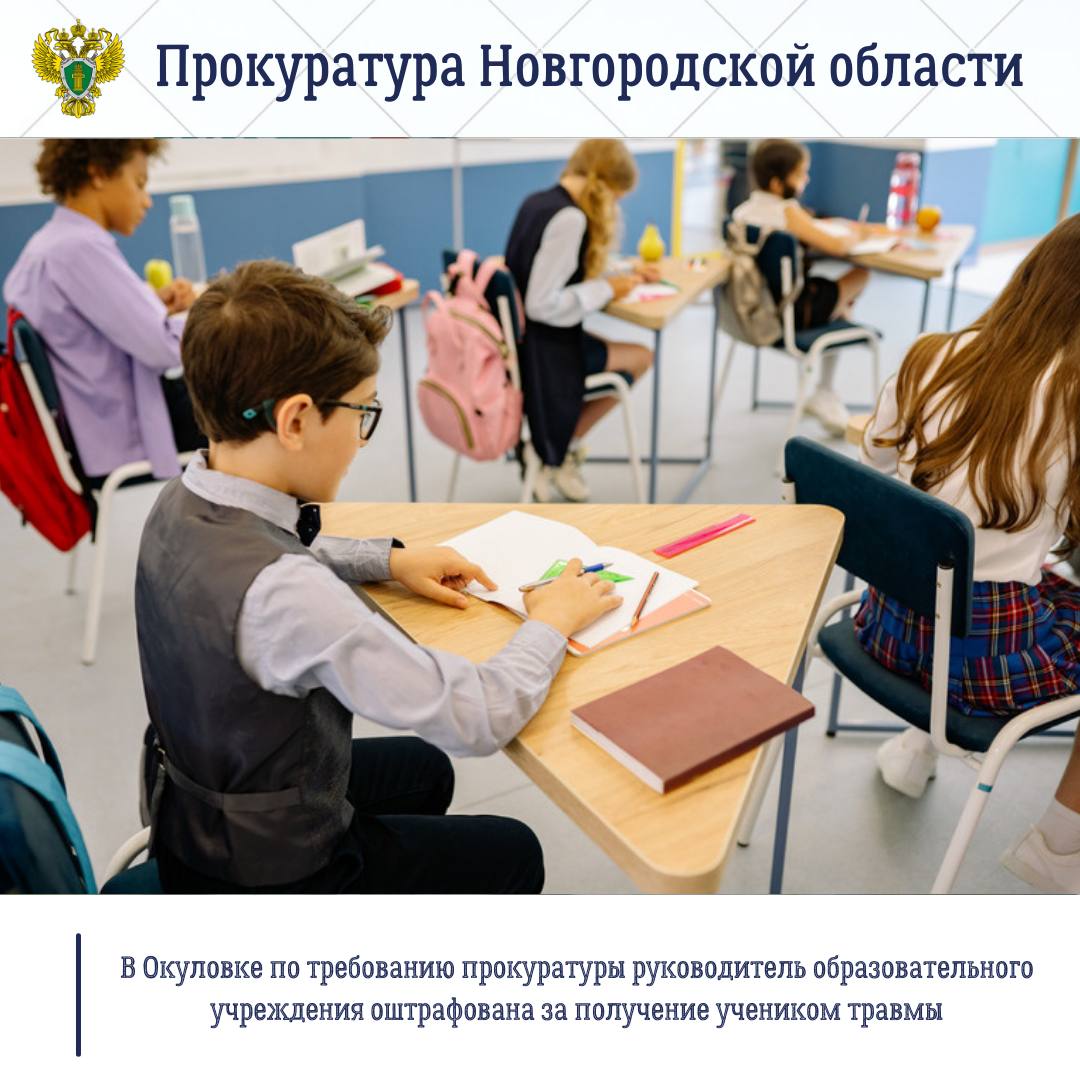 Установлено, что в сентябре 2025 года в МАОУ «Средняя школа № 1 г. Окуловка» в результате конфликта, произошедшего между тремя учащимися седьмого класса, один из них получил перелом ноги.Надзорными мероприятиями установлено, что данная ситуация стала возможной по причине отсутствия контроля со стороны директора за работой образовательного учреждения.