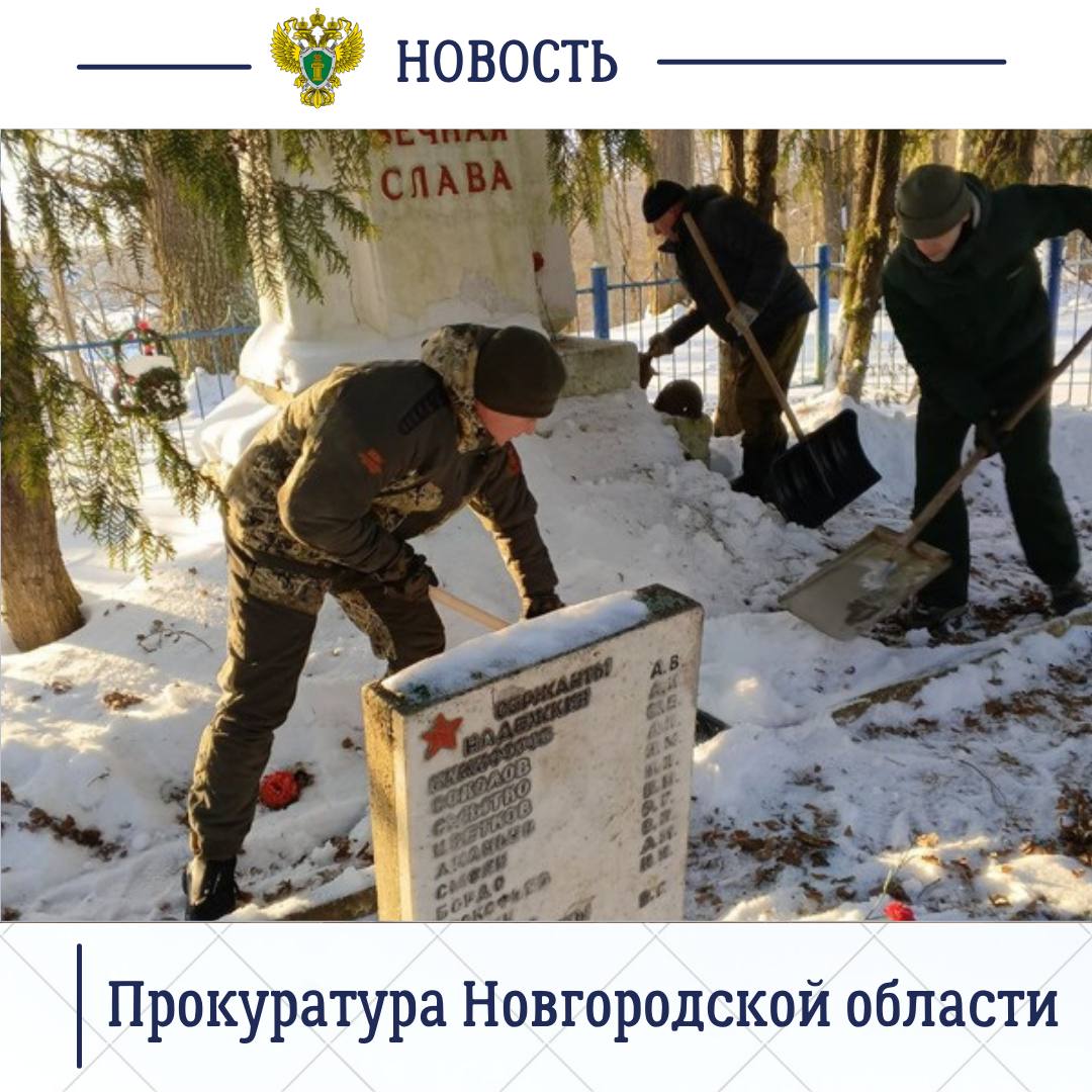 Старорусская и Холмская межрайонные прокуратуры в рамках патриотического воспитания и в преддверии Дня защитника Отечества провели работы по благоустройству воинских захоронений.