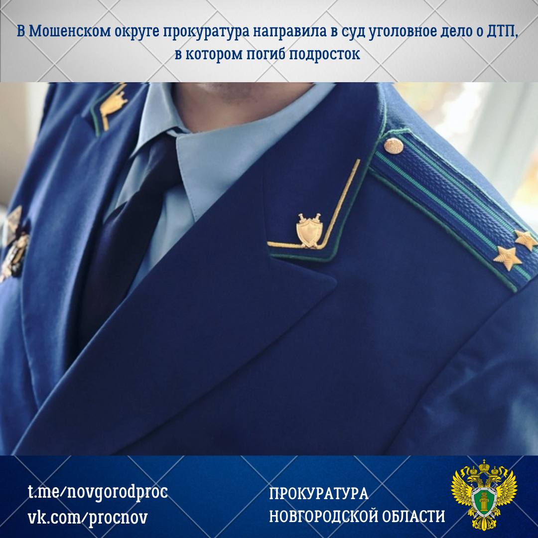 Прокуратура Мошенского района направила в суд уголовное дело в отношении 63-летнего местного жителя. Он обвиняется в совершении преступления по ч. 3 ст. 264 УК РФ (нарушение лицом, управляющим автомобилем, правил дорожного движения, повлекшее по неосторожности смерть человека).