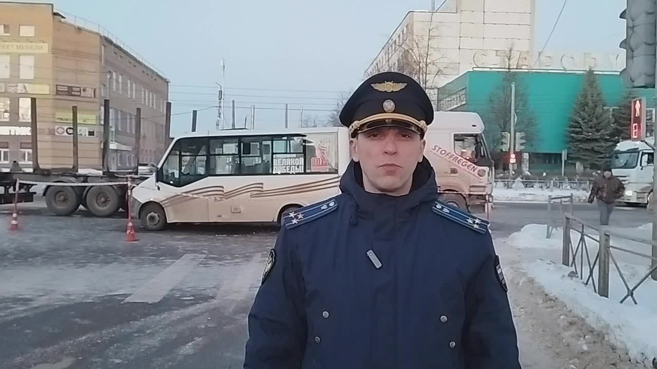 Комментарий Старорусского межрайонного прокурора Романа Щемелева с места происшествия, где на пересечении улиц Поперечная и Восстания в Старой Руссе произошло столкновение маршрутного автобуса и грузового автомобиля, в результате ДТП четверо человек пострадали, в том числе двое подростков.