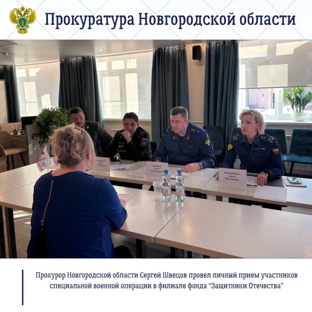 Накануне прокурор области Сергей Швецов провел личный прием участников специальной военной операции и членов их семей в Новгородском филиале фонда «Защитники Отечества».