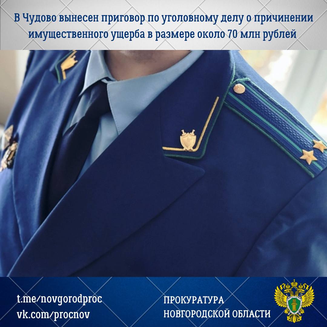 Чудовский районный суд с участием представителя прокуратуры Чудовского района вынес обвинительный приговор по уголовному делу в отношении руководителя коммерческой организации по рециклинингу отходов Александра Николаева. Он признан виновным в совершении преступления по п. «б» ч. 2 ст. 165 УК РФ (причинение имущественного ущерба собственнику имущества путем обмана и злоупотребления доверием, причинившее особо крупный ущерб).