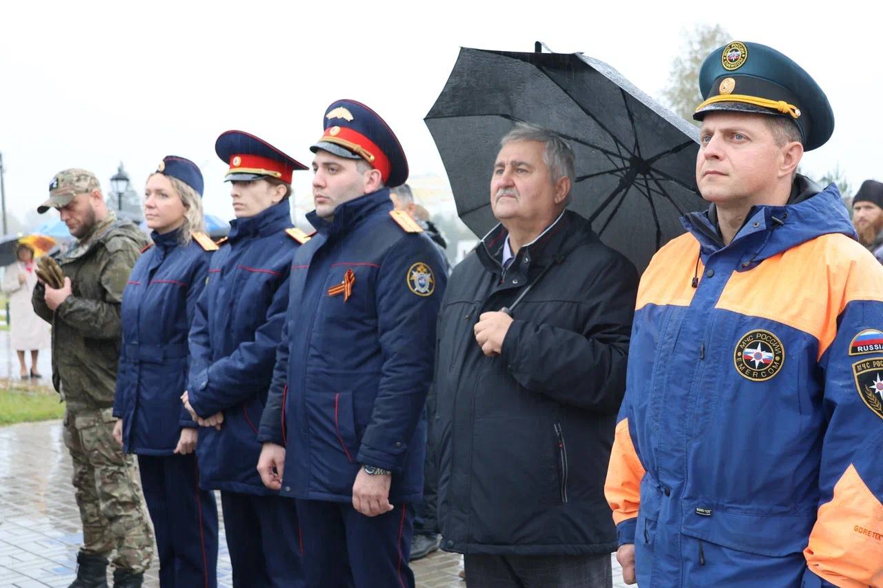 В деревне Мясной Бор состоялось мероприятие, посвященное захоронению останков воинов, погибших в годы Великой Отечественной войны. Они были обнаружены в ходе поисковых работ в рамках межрегиональной Вахты Памяти.