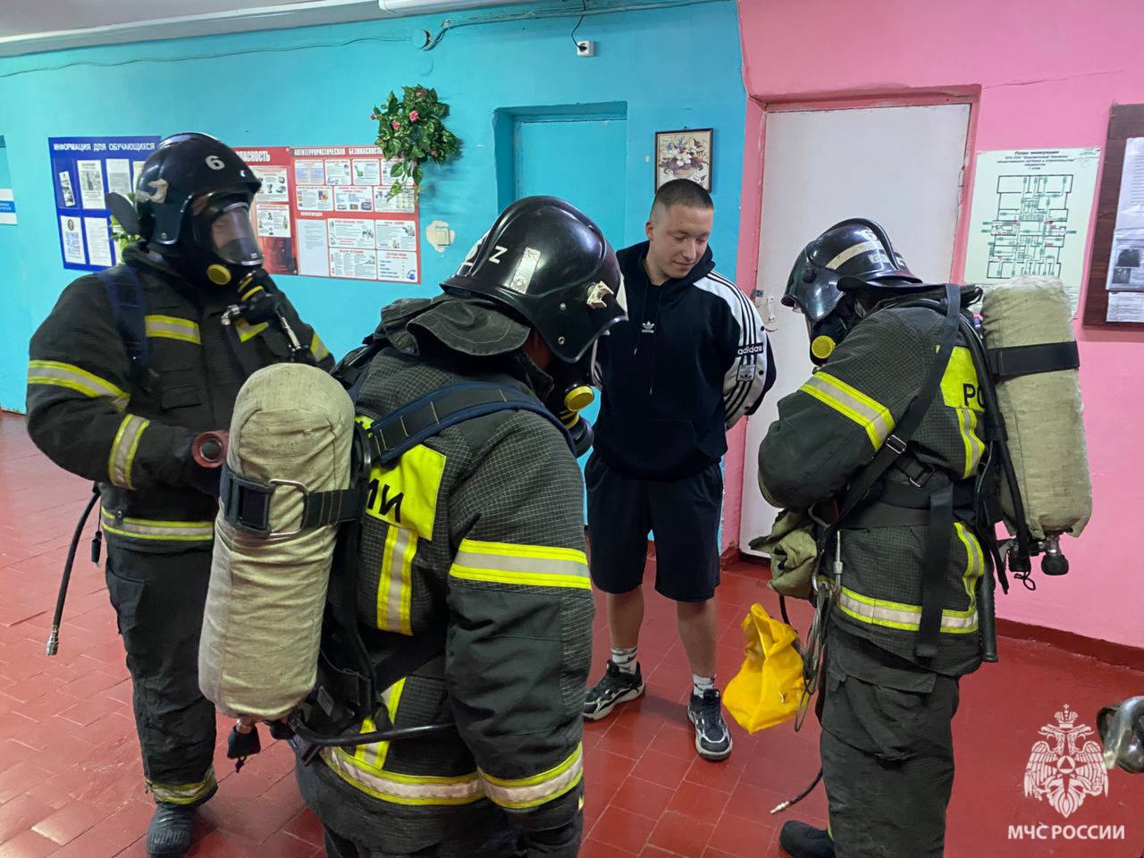 К моменту прибытия пожарных расчетов студенты и персонал успели эвакуироваться самостоятельно. Однако один человек оказался «отрезан огнем» и не смог выбраться. Прибывшие пожарно-спасательные подразделения, звеном газодымозащитной службы провели разведку, обнаружили «пострадавшего» и с помощью спасательного устройства вывели на свежий воздух. Условный пожар был ликвидирован.