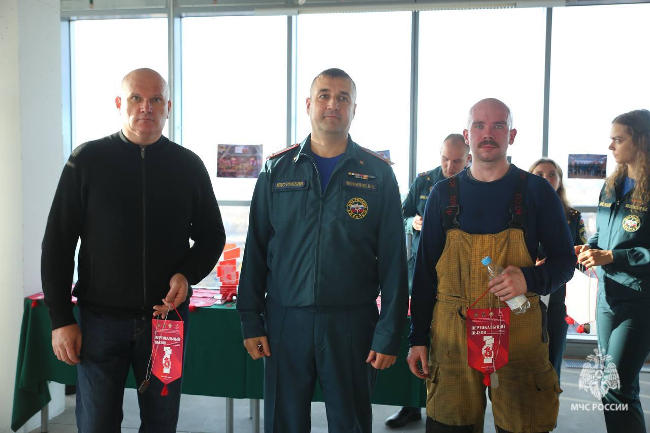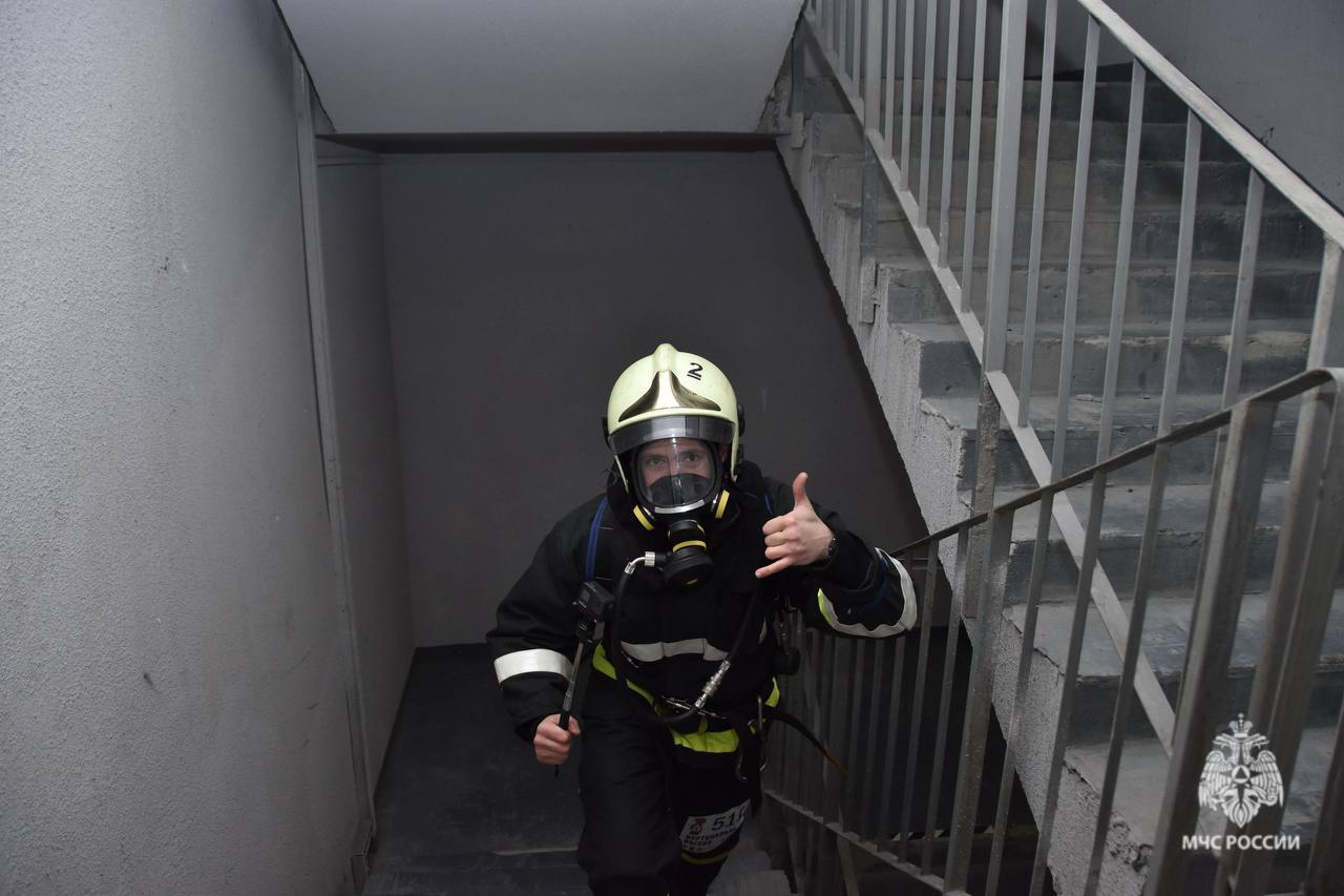 спасателей покорили вершину небоскреба. Участники преодолели этажей, ступеней,