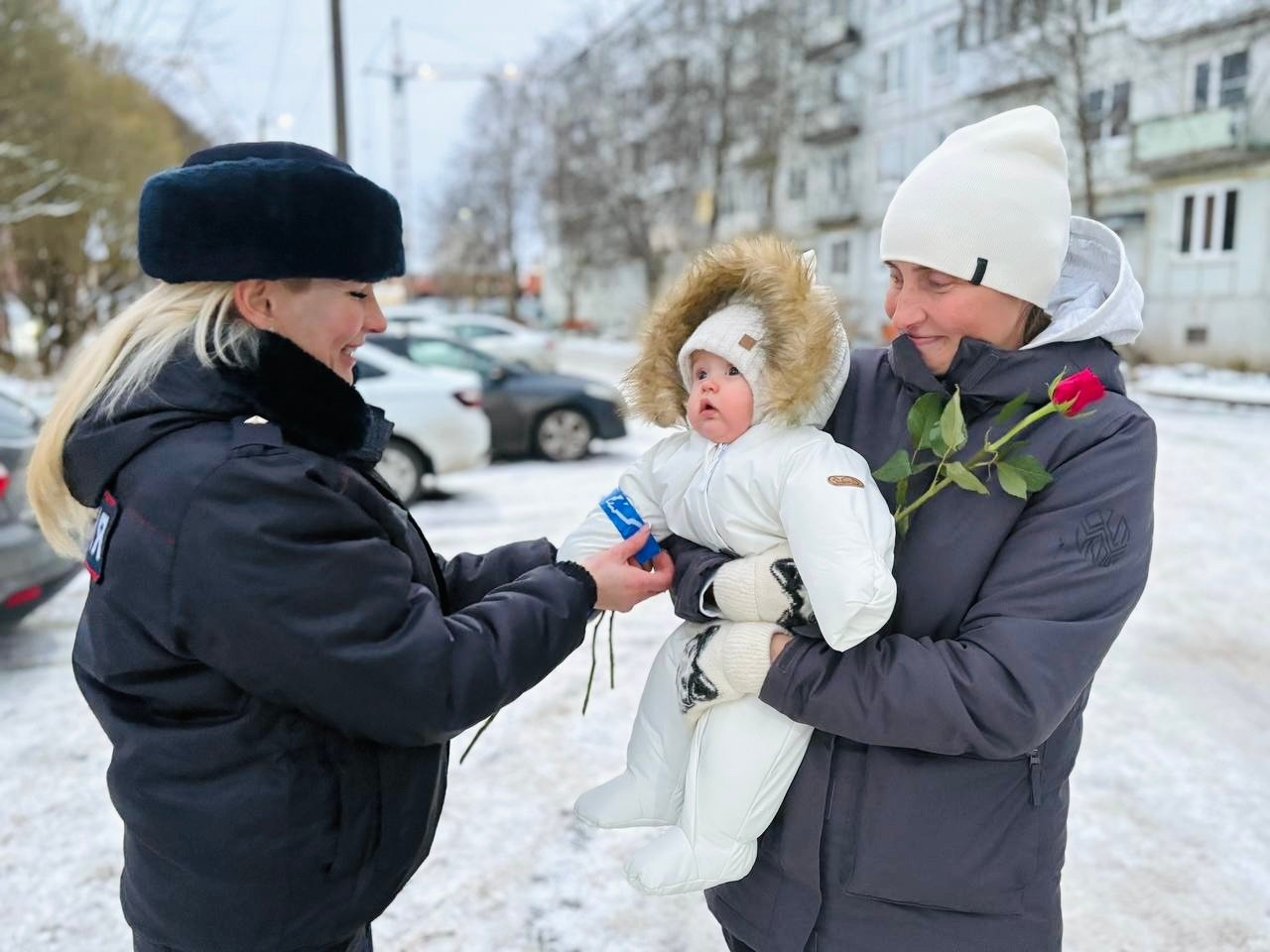 В преддверии знаменательной даты сотрудники Госавтоинспекции Новгородского округа совместно с активистами отряда ЮПИД поздравили участниц дорожного движения, имеющих статус мам.