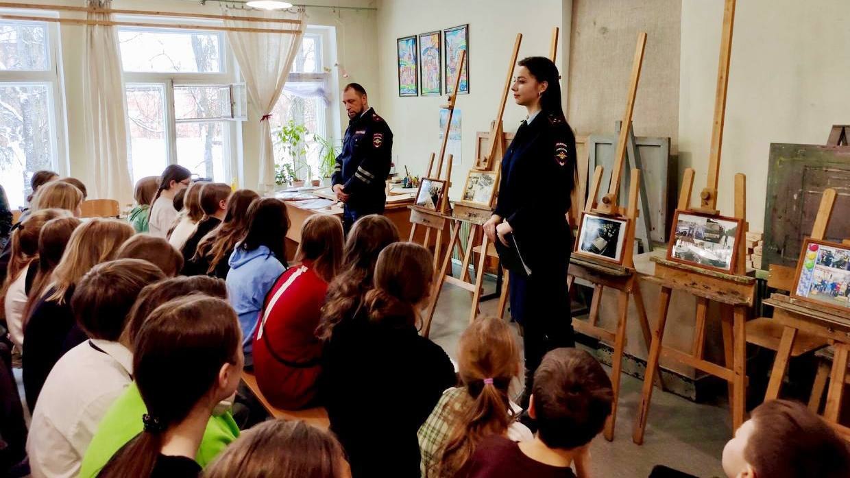 В день старта фестиваля «Дорожная безопасность» местом для общения сотрудников Управления региональной Госавтоинспекции и подрастающего поколения стала Новгородская детская художественная школа, расположенная в самом сердце Великого Новгорода.