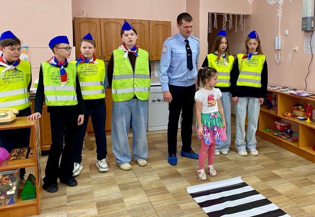 Серию мастер-классов по изготовлению пассивных средств защиты продолжили для детей дошкольного возраста юные инспекторы движения Старой Руссы.