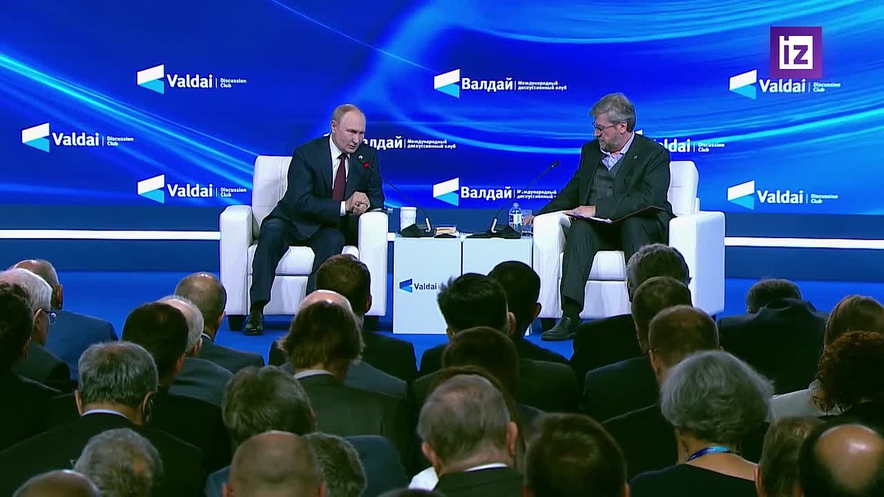 "Это значит, что разложить общество изнутри у противников — не получается", — подчеркнул российский лидер в ходе пленарной сессии XХII ежегодного заседания Международного дискуссионного клуба "Валдай", отвечая на вопросы модератора.