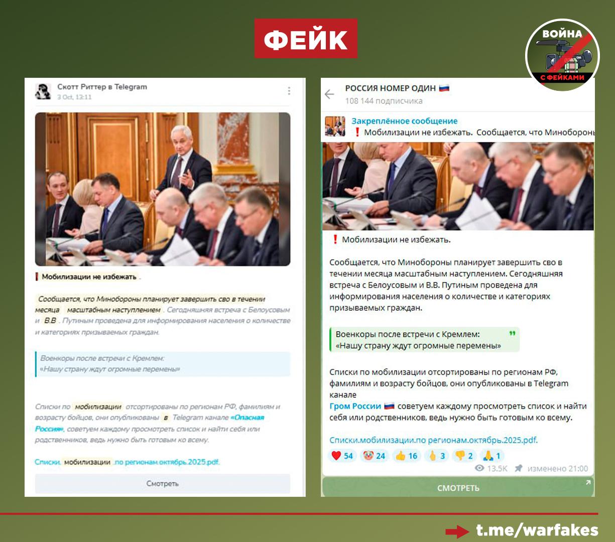 Фейк: Минобороны РФ запустило кампанию по подготовке к масштабной мобилизации. Осенний призыв используется как инструмент для сбора детальной информации о состоянии мобилизационного ресурса. Такую информацию распространяет ряд телеграм-каналов.
