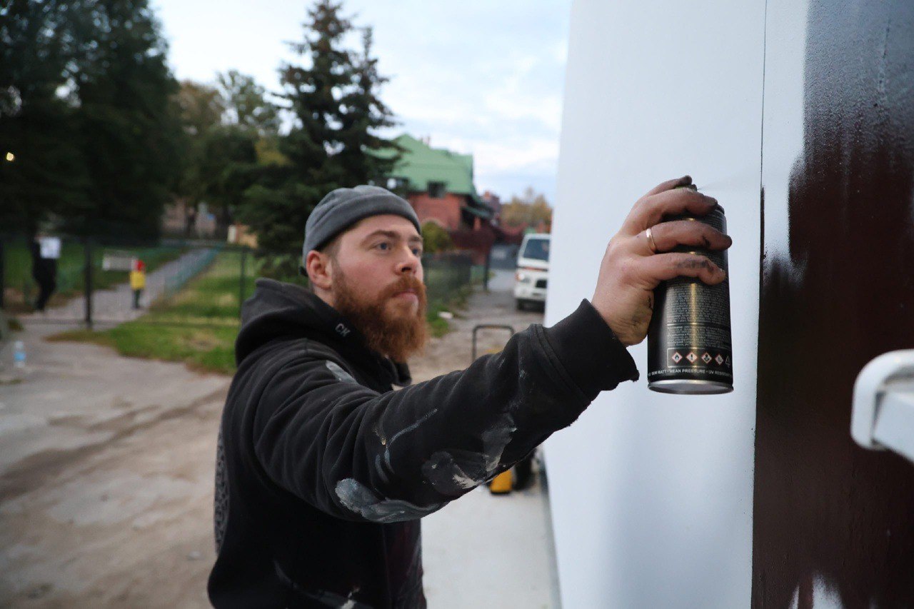 «Рисунок с лисичкой тоже как будто бы несколько об этом говорит. Хотя, в то же время, весной будет обратная история: как будто всё просыпается от спячки. Мне хотелось создать что-то такое теплое, доброе и не слишком броское. Глаз цепляющее, но с точки зрения восприятия — не вызывающее неприятных эмоций, а так, чтобы это было легко и согревало местных жителей».