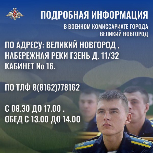 Более подробную информацию можно получить в военном комиссариате Великого Новгорода , Новгородского и Батецкого муниципальных районов