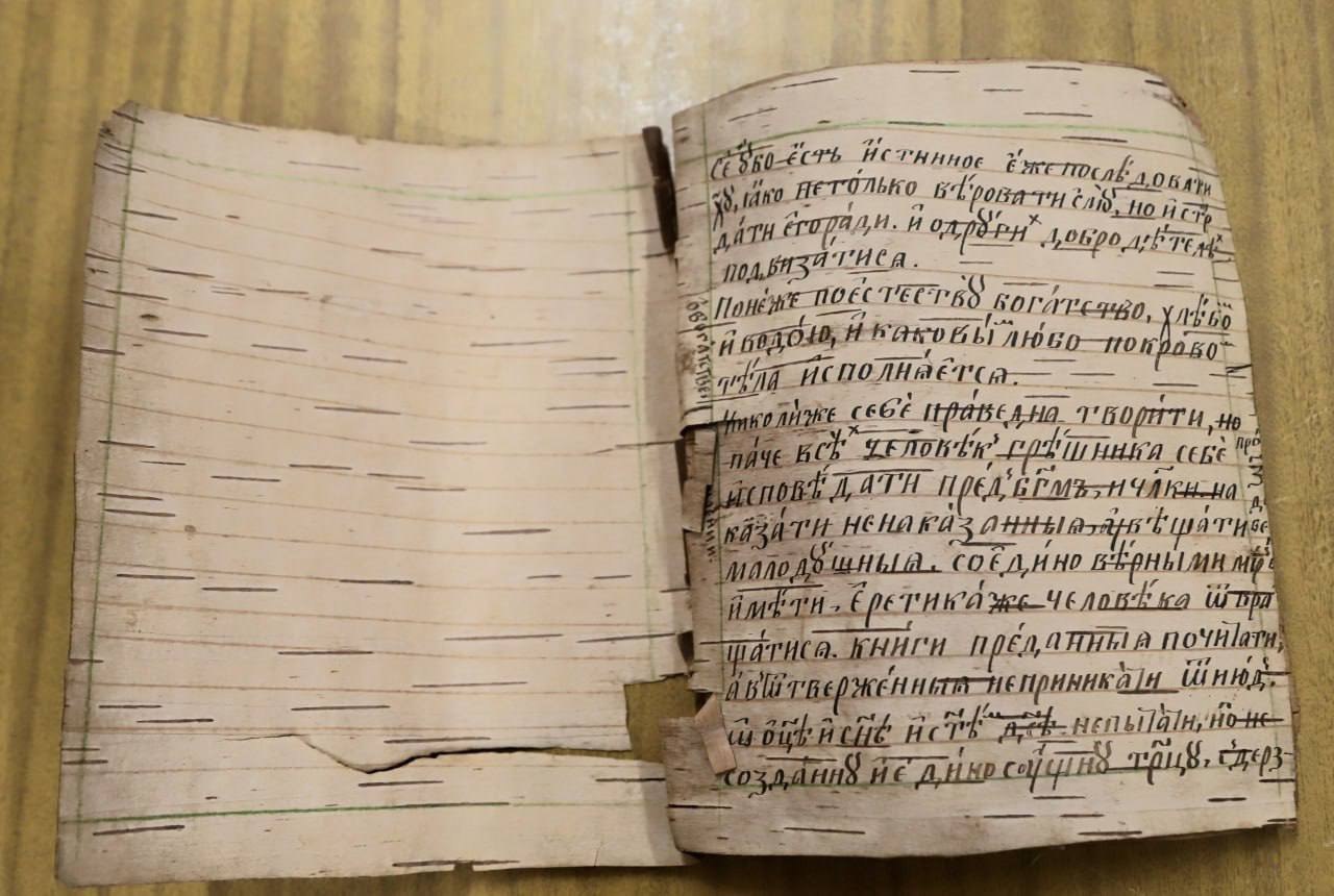 «В собрании Новгородского музея-заповедника уже хранятся сотни средневековых берестяных грамот, а также уникальная берестяная книга XIII века. Известно, что часть древних новгородских грамот написали чернилами. Та же техника использована в книге старообрядцев: её текст — выдержки из аскетической книги «Лествица» церковного автора VI века Иоанна Синайского — написана чернилами на тщательно подготовленной бересте», – уточнили сотрудники музея.