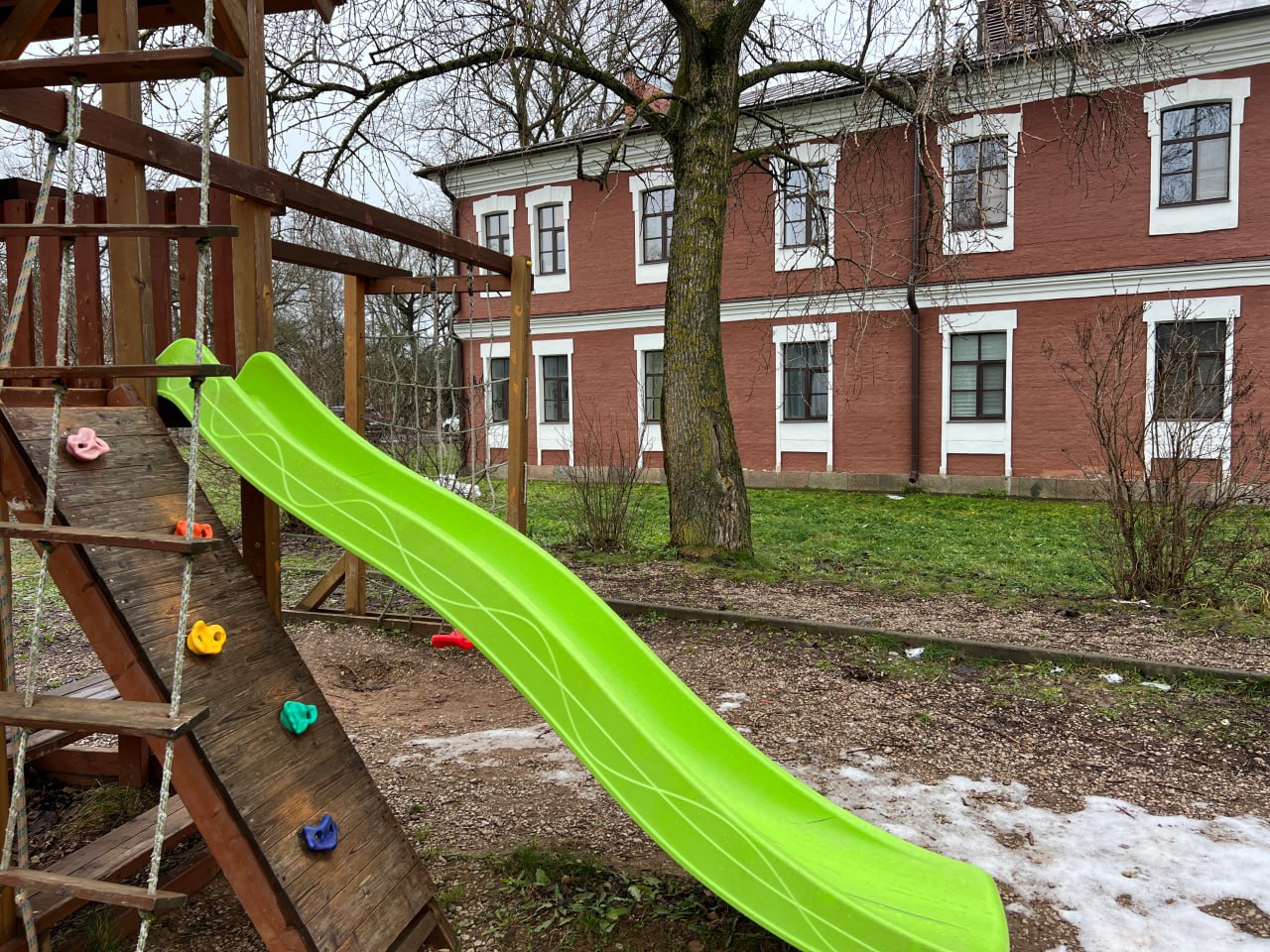 Для тех, кто хочет поиграть в активные игры на свежем воздухе, на территории больницы оборудована современная детская площадка.