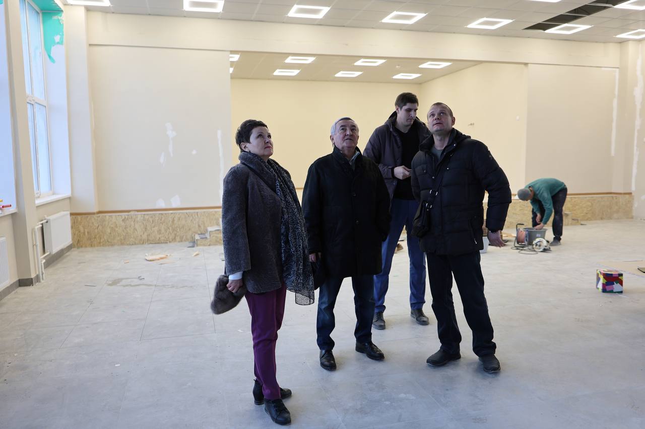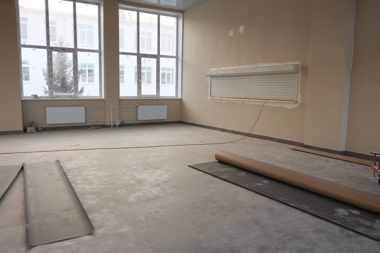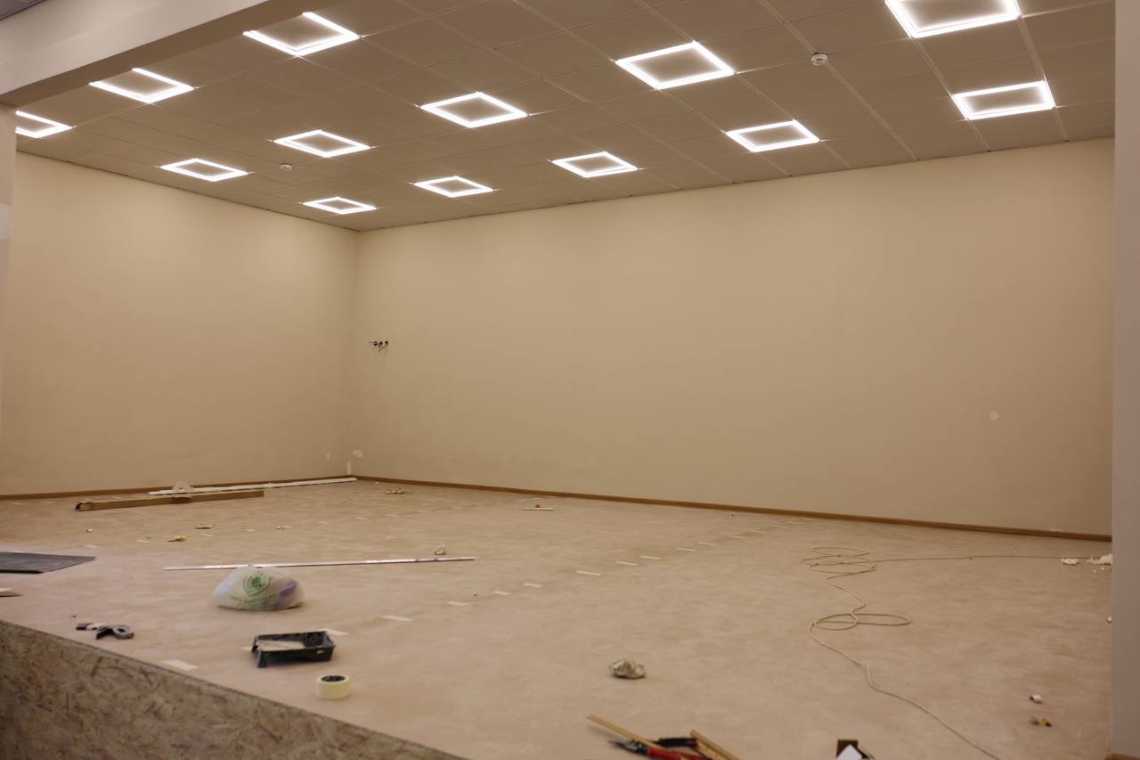 «Сейчас мы сделали стяжку и уложили плитку в актовом зале. Штукатурим стены, в некоторых помещениях устанавливаем потолки, светильники, красим первым слоем, ставим двери. В общем, делаем всё от нас зависящее, работаем в полную силу. Будем работать и в новогодние праздники. Другого пути у нас нет. Наша задача – сдать объект как можно скорее», – сказал Дмитрий Андреев.
