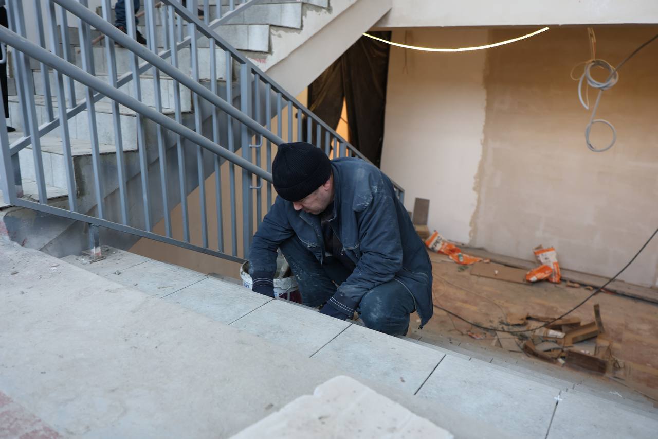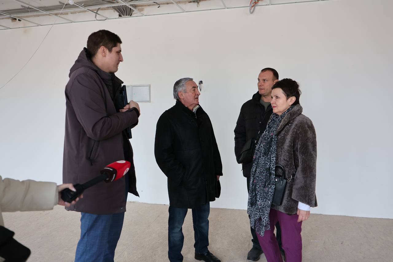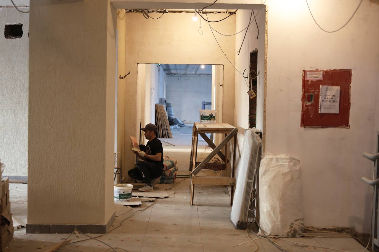 «Сейчас мы сделали стяжку и уложили плитку в актовом зале. Штукатурим стены, в некоторых помещениях устанавливаем потолки, светильники, красим первым слоем, ставим двери. В общем, делаем всё от нас зависящее, работаем в полную силу. Будем работать и в новогодние праздники. Другого пути у нас нет. Наша задача – сдать объект как можно скорее», – сказал Дмитрий Андреев.