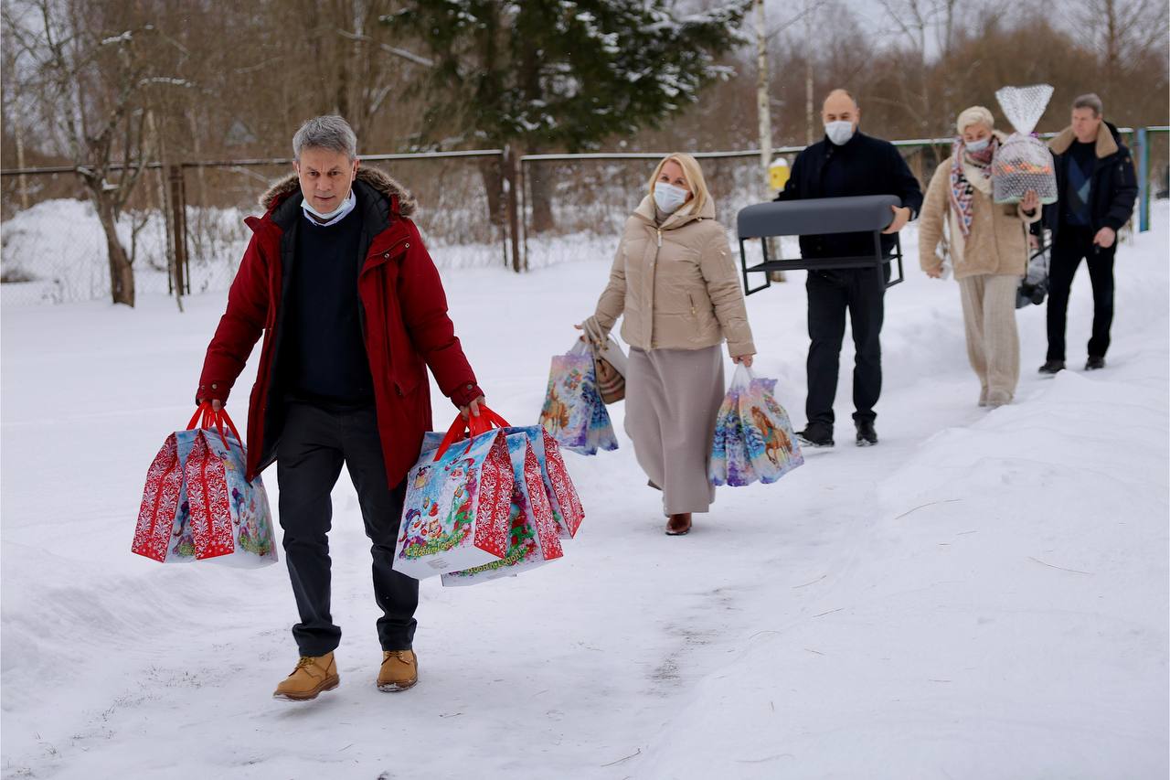 Лариса Сергухина, Станислав Мельников и Денис Павлюк от имени депутатского корпуса Новгородской областной Думы поздравили детей с Новым годом и днём рождения приюта, который учреждение отмечает в январе.