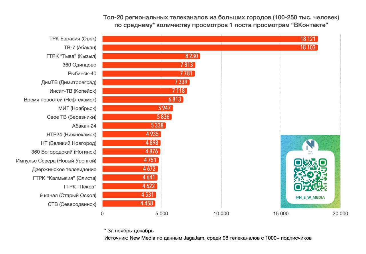 По данным рейтинга New Media, наша группа оказалась на шестом месте среди самых просматриваемых сообществ региональных телеканалов. Кроме того, сообщество НТ вошло в топ-20 по среднему количеству просмотров одного поста, заняв 13-ю строчку.