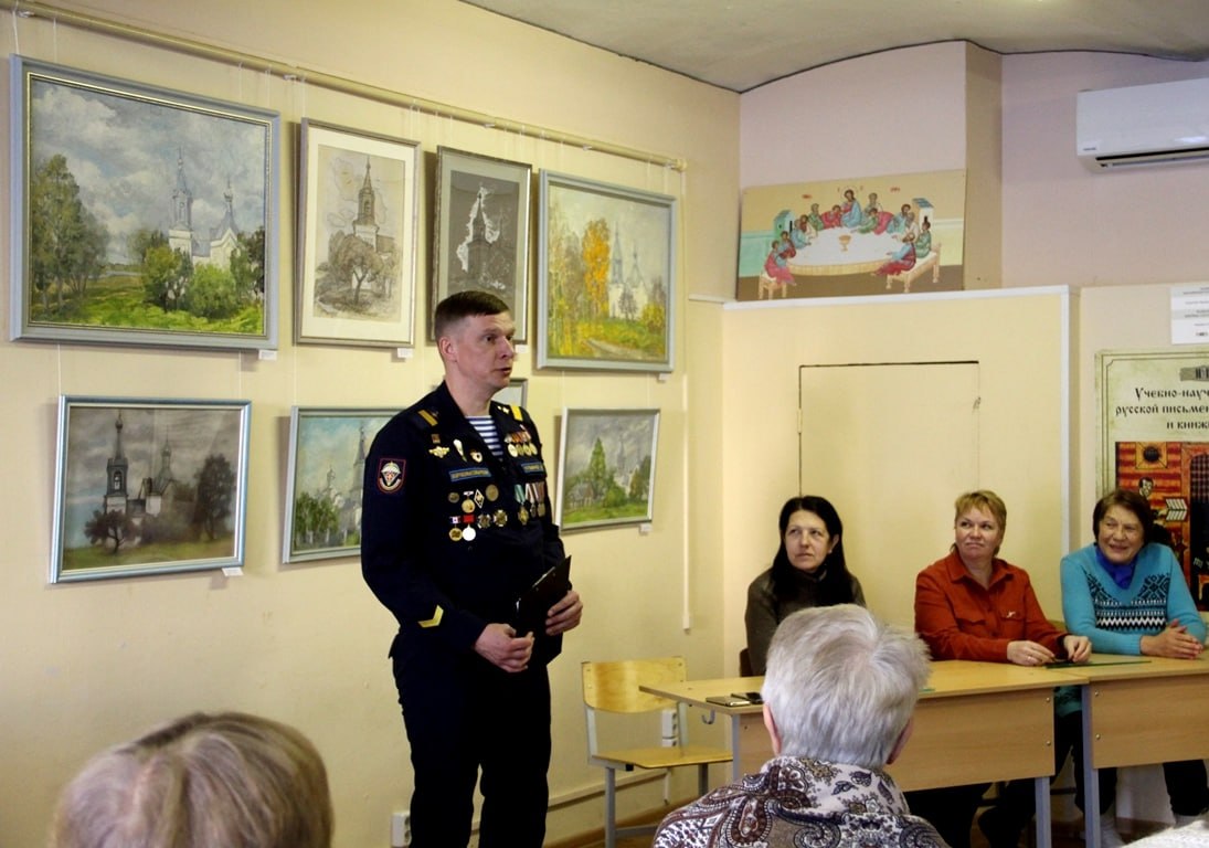 Художники Елена Васильева, Мария Баранова и Виктория Сахарова представили свои работы — пейзажи с храмами Поозерья в различных художественных техниках. Эти картины составили выставку, которую предварил рассказом о ней руководитель проектов «Русский колокол», «Святое Поозерье. В гостях у батюшки Александра Фролова», ветеран специальной военной операции, участник проекта «СВОи Герои 53» Дмитрий Кузьмичев.