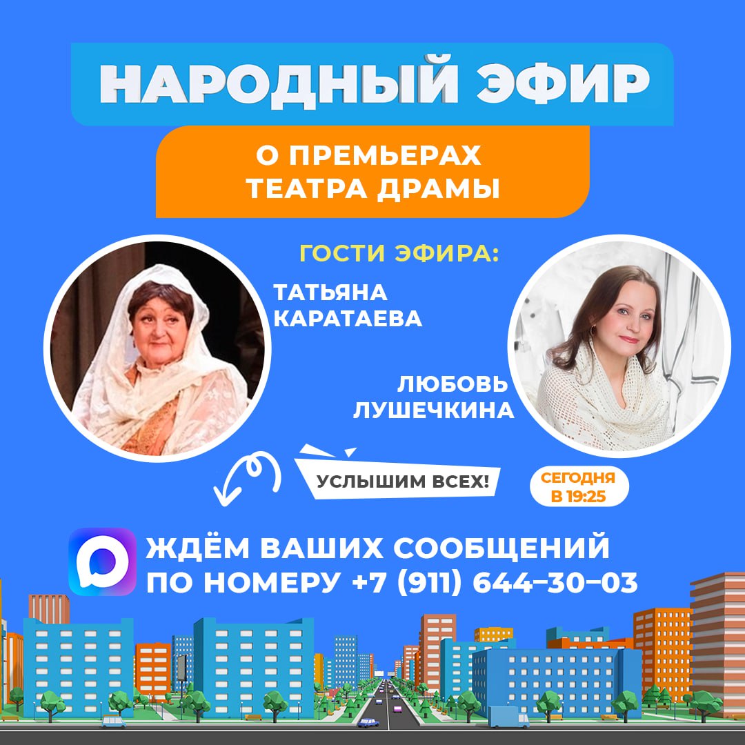 Гостями «Народного эфира» сегодня станут артистки Новгородского театра драмы Любовь Лушечкина и Татьяна Каратаева.