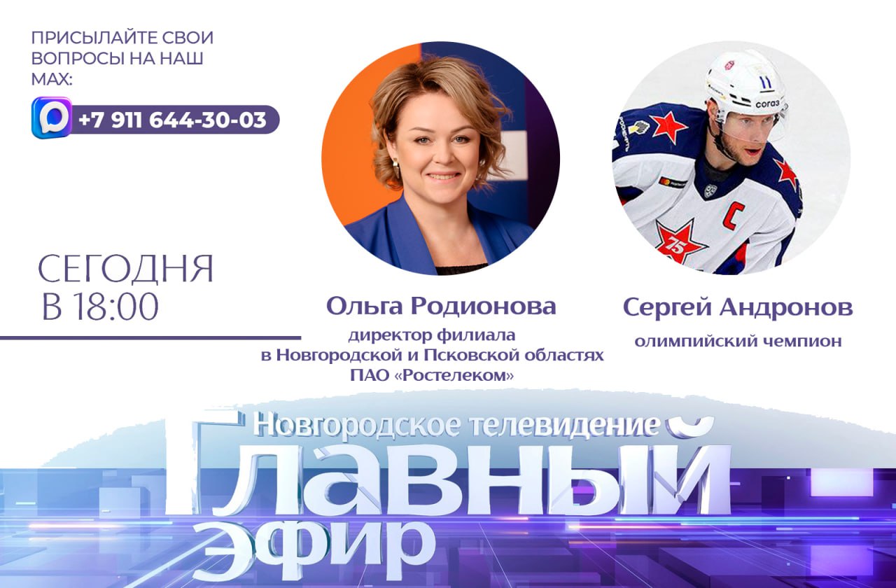 Гостями «Главного эфира» станут олимпийский чемпион Сергей Андронов и директор филиала в Новгородской и Псковской областях ПАО «Ростелеком» Ольга Родионова. Расскажем о главном хоккейном трофее, а также ответим на вопросы зрителей.