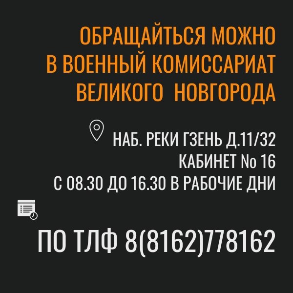 Для получения направления на обучение обращайтесь в военный комиссариат Великого Новгорода