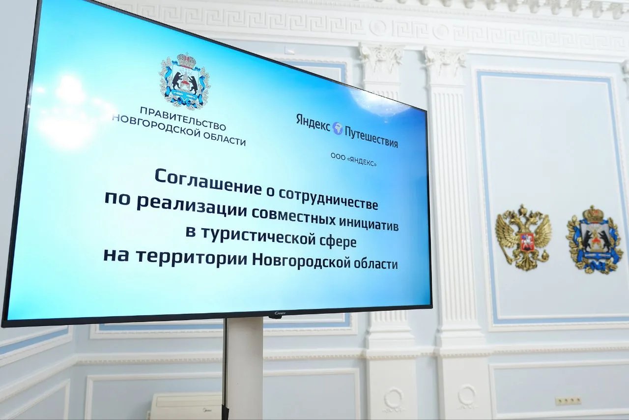 Заместитель губернатора Новгородской области Елена Кирилова и директор по региональному сотрудничеству компании «Яндекс» Антон Москаленков подписали соглашение о реализации совместных инициатив в отрасли туризма.