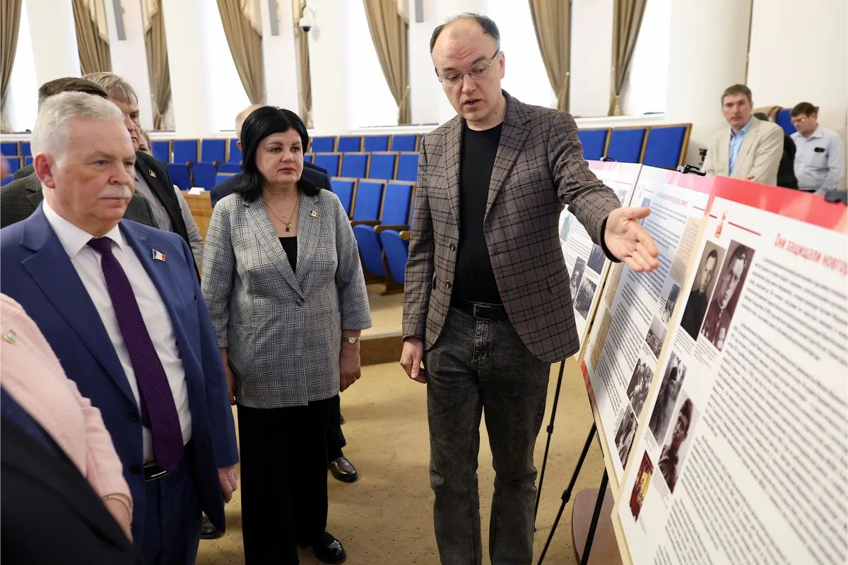 Депутаты Новгородской областной Думы познакомились с 40 уникальными архивными материалами, а также публикациями из газет и книг. Также они смогли увидеть фотографии, воспоминания и документы, рассказывающие о героических судьбах представителей разных народов СССР, сражавшихся на новгородской земле в годы Великой Отечественной войны.