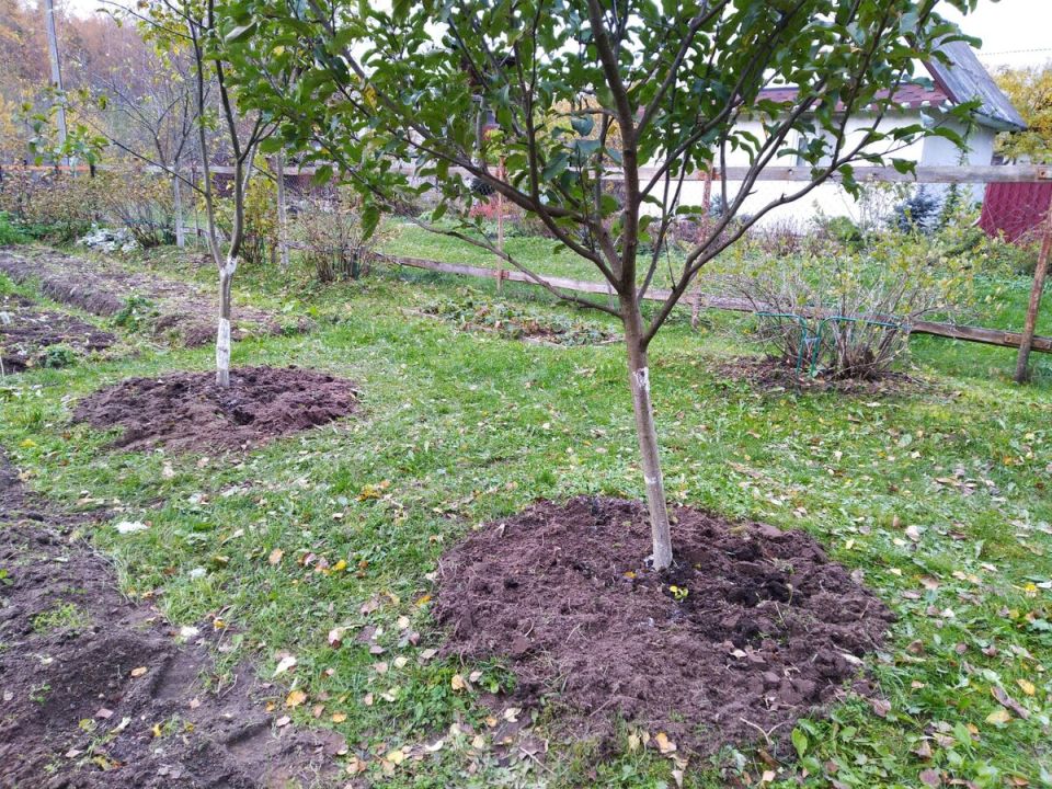 - Перегной: 50 килограммов для взрослых деревьев и около 30 для молодых, заделывать в почву на глубину до 20 сантиметров.
