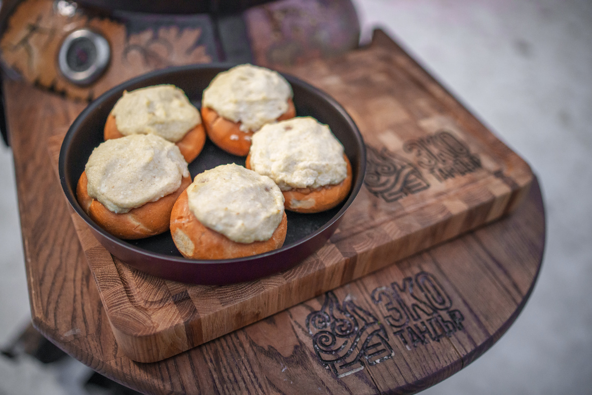 Формируйте шаньги округлой формы, выкладывайте их на противень, застеленный бумагой для выпечки, и дайте подняться ещё 20 минут. Для поливы просто смешайте все ингредиенты до однородности. Как только шаньги поднимутся, щедро намажьте их поливой и отправляйте в духовку, заранее разогретую до 200 °C, на 25-30 минут. Изумительных ароматов не избежать!