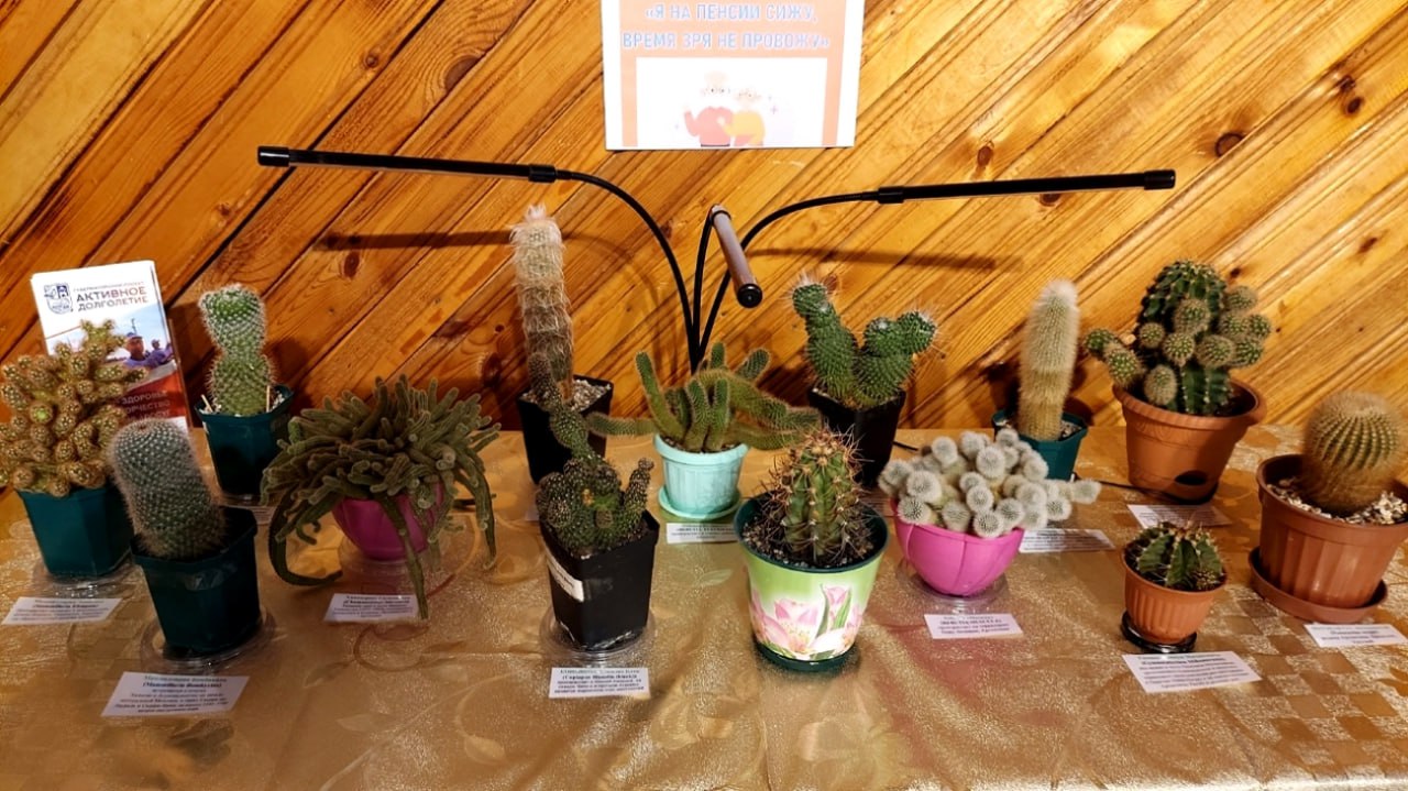 На первой «Я на пенсии сижу, время зря не провожу» (0+), приуроченной ко Дню пожилых людей, представлены работы представителей серебряного возраста: картины, выполненные в технике «алмазная мозаика» и из природных материалов, а также коллекция самых разных, необычных кактусов.