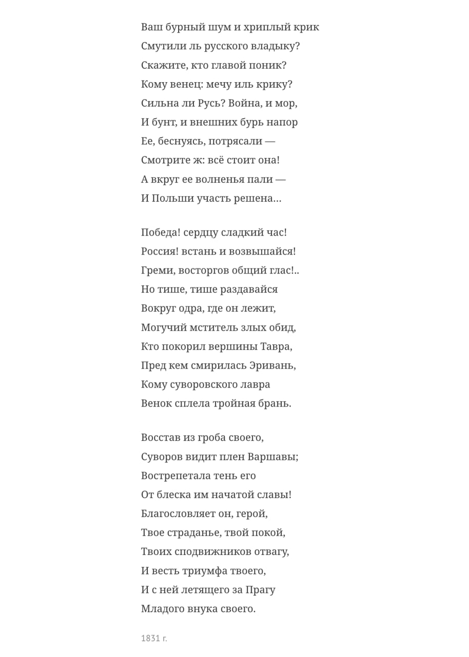 Полный текст стихотворения Пушкина «Бородинская годовщина», которое процитировал Путин на Валдае.