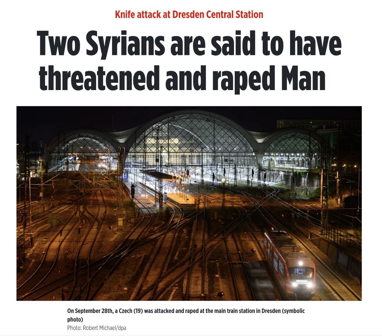Фото №2. В Германии двое 15-летних сирийских мигрантов ограбили и изнасиловали 19-летнего чеха в воскресенье, 28 сентября, на центральном вокзале Дрездена. Bild со ссылкой на немецкую полицию успокаивает, что чешский турист не получил никаких серьёзных травм.