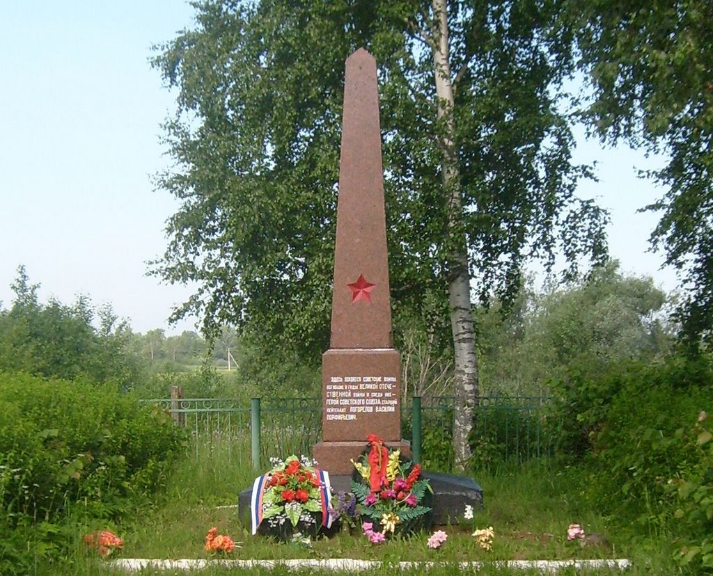 В новгородском Парфине, тверском Выползове и луганском Красном Луче есть улицы Василия Погорелова. В Парфине и Выползове ему установлены мемориальные памятники, а в Красном Луче - бюст.