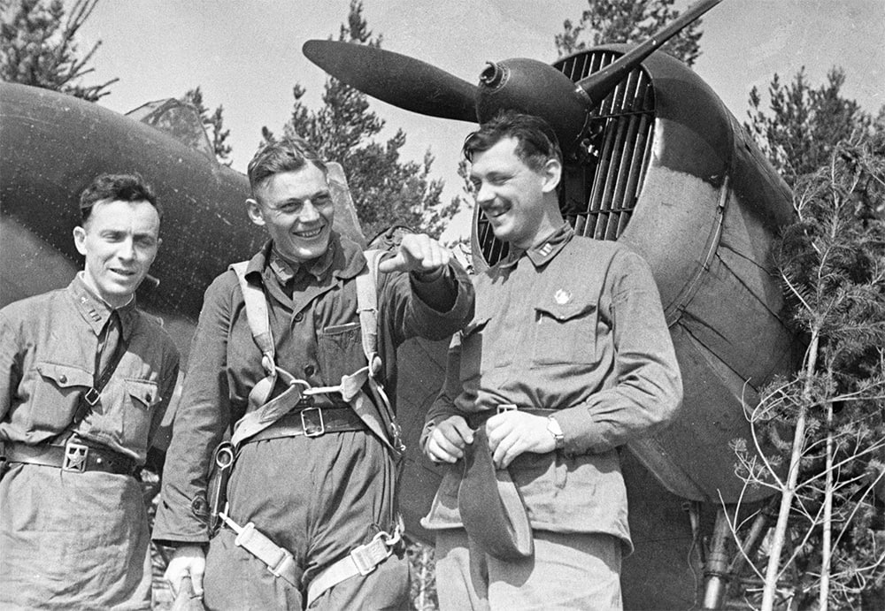 Можно сказать, что боевого лётчика Василия Погорелова знала вся страна. Фотографию авиатора часто можно было увидеть на страницах центральных газет. Вот он в кабине своего Пе-2 в номере «Красной звезды» от 16 декабря 1941 года. А вот на фото Петра Бернштейна он что-то рассказывает фронтовому корреспонденту, писателю Сергею Михалкову на фоне учебно-тренировочного бомбардировщика УСБ. Погорелов еще при жизни стал народным героем.