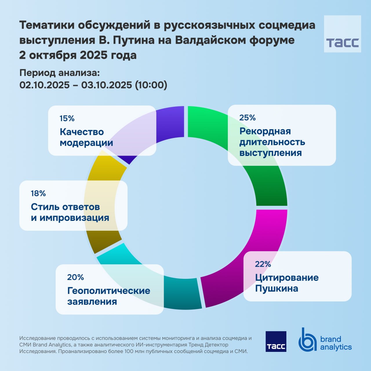 Выступление Владимира Путина на Валдайском форуме в Сочи широко освещается мировыми медиа. Эксперты отметили, что президент России похвалил Дональда Трампа, нашел добрые слова для Чарли Кирка, выступил в защиту Индии и ее...