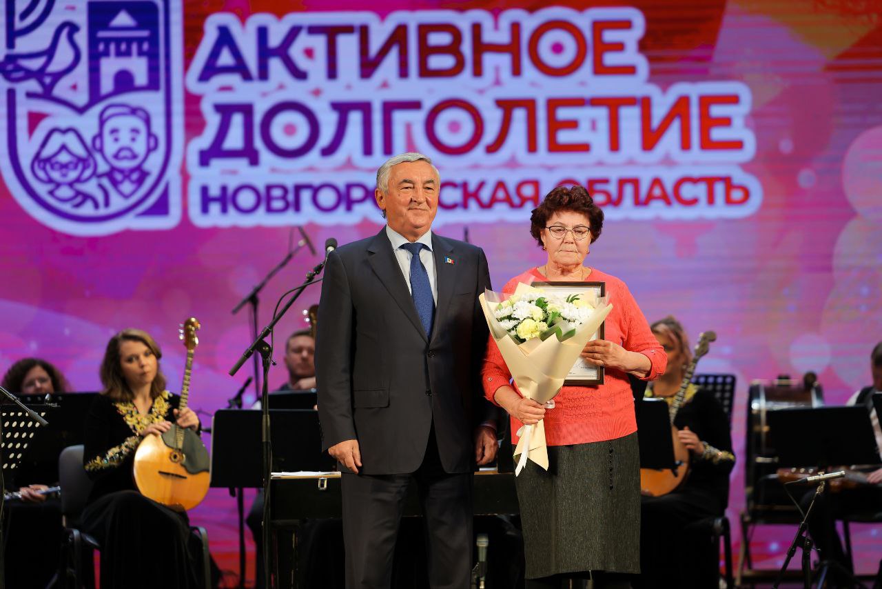 За активную жизненную позицию и большой личный вклад в реализацию региональной программы «Активное долголетие» Юрий Бобрышев вручил Благодарности председателя Новгородской областной Думы.
