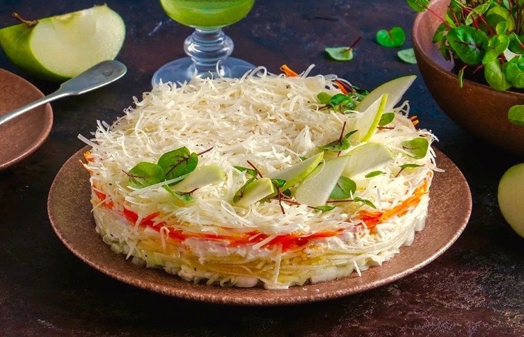 Объединяя простоту и изысканность, французский капустный салат готовится всего из нескольких компонентов, но восхищает своим вкусом. Хрустящая белокочанная капуста, нежное яблоко, яйца, и немного домашнего майонеза создают уникальное вкусовое сочетание. Чтобы попробовать этот салат, понадобятся: