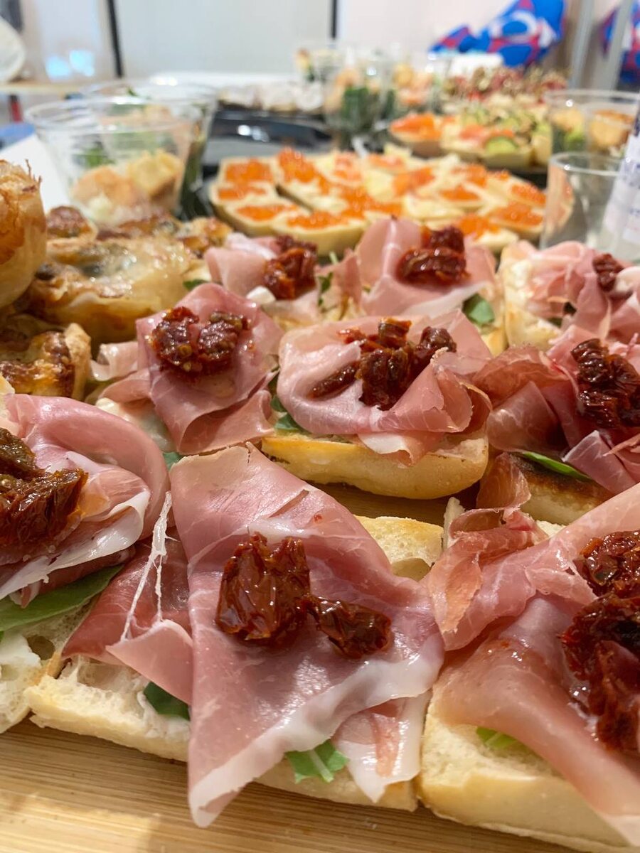 - Брускетты: Простые, но эффектные варианты с шпротами и маринованными огурцами, а также комбинации с хомоном и аркуколой.