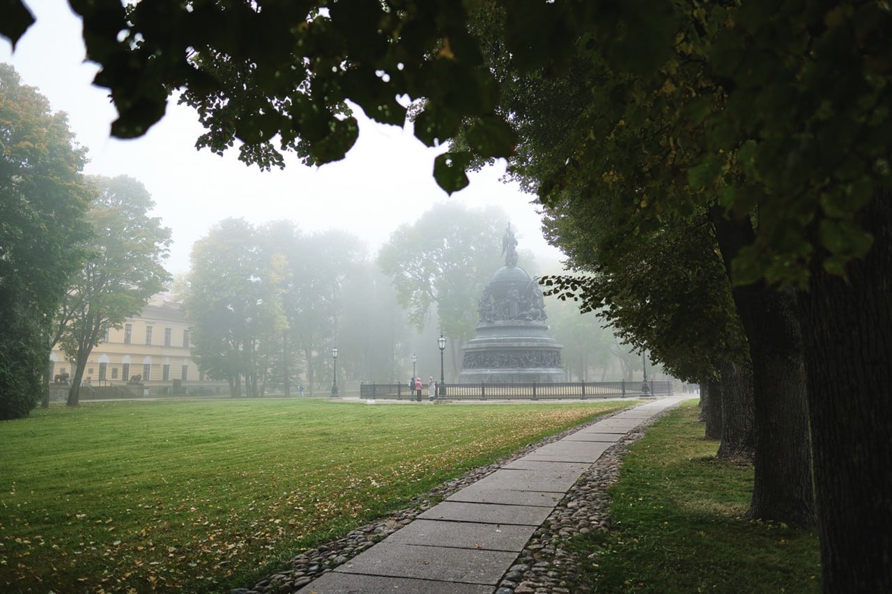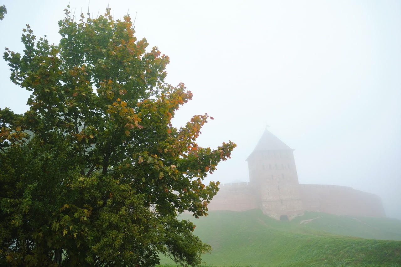 Фоторепортаж: осеннее туманное утро в Великом Новгороде