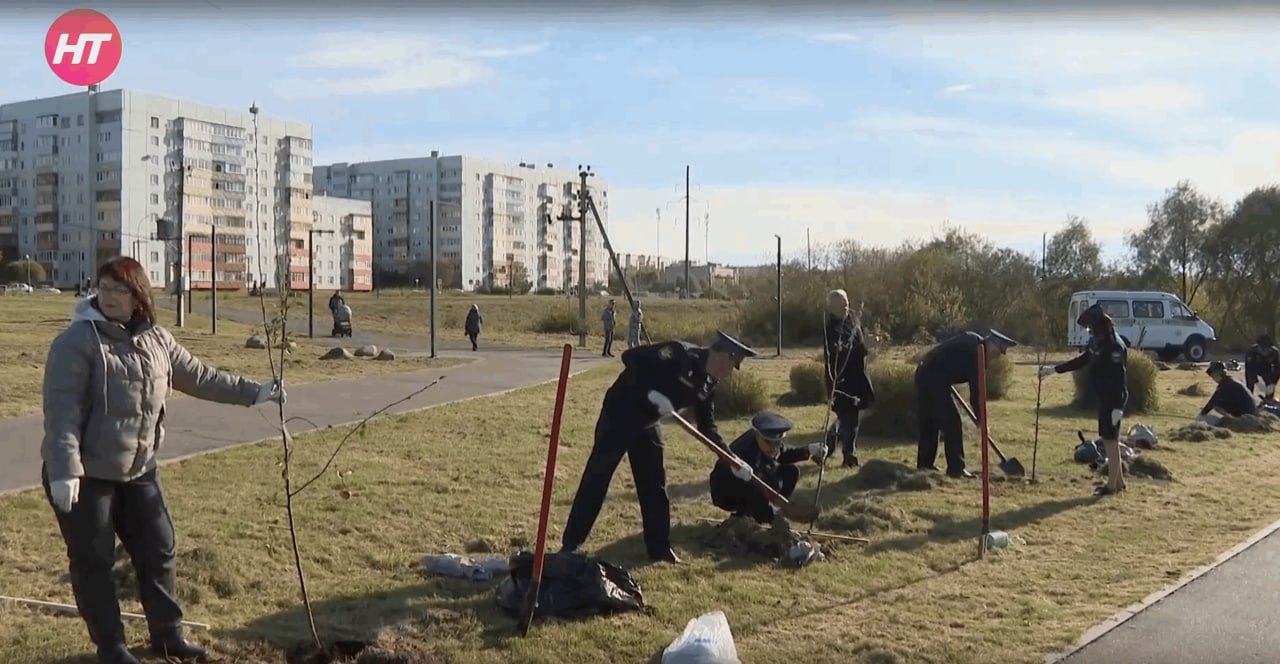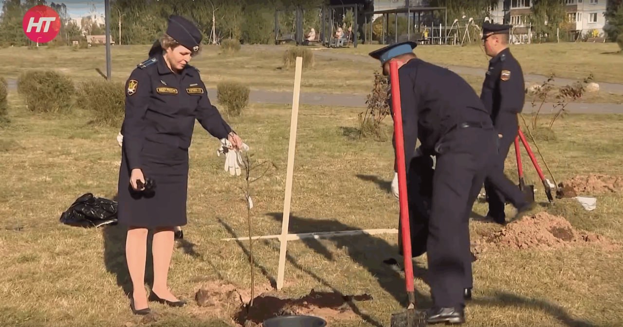 Новгородские судебные приставы высадили 14 яблонь в Веряжском парке. Подарок Великому Новгороду они сделали в честь юбилея службы.