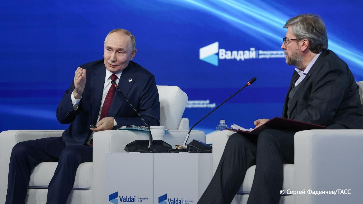 Путин и модератор пленарной сессии "Валдая" Лукьянов за кулисами обыграли обстановку фразами из фильма "Калина красная".