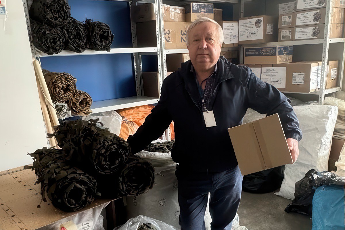 Председатель Новгородского Союза ветеранов Николай Иванович Глушенков доставил очередную партию маскировочных сетей бойцам на передовую.