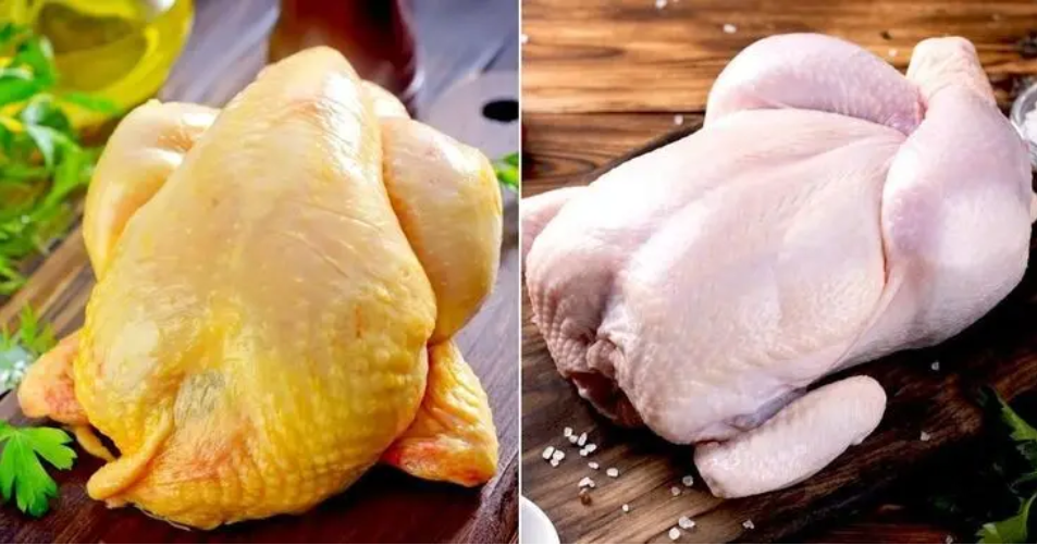 Но настоящая деревенская курица может быть лишь немного желтой, если ее кормили натуральным кукурузным кормом или травой. Ярко-равномерный желтый оттенок чаще всего является результатом работы химиков, а не заботливых фермеров.