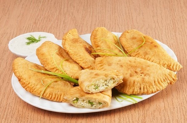 Подавайте чебурята горячими, украсив свежими перьями зеленого лука, а соус предложите отдельной порцией. Простой, но изысканный вкус подарит настоящий праздник для ваших вкусовых рецепторов!