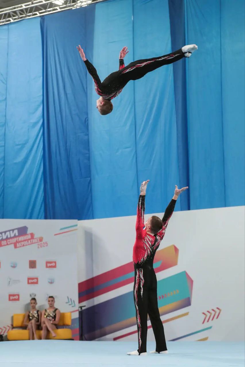 По результатам балансового, темпового и комбинированного упражнений мужская пара новгородских спортсменов занимала вторую позицию. Акробаты уступили меньше одного балла только Ивану Дерендяеву и Матвею Черных из Кировской области. Третье место заняли представители Подмосковья Мирослав Гуляков и Иван Гавриков.